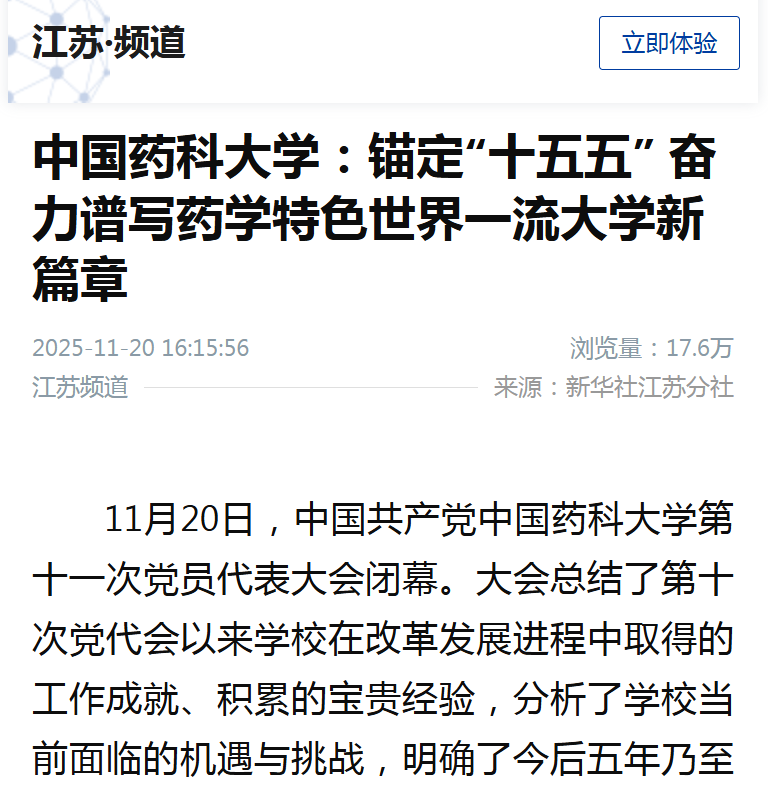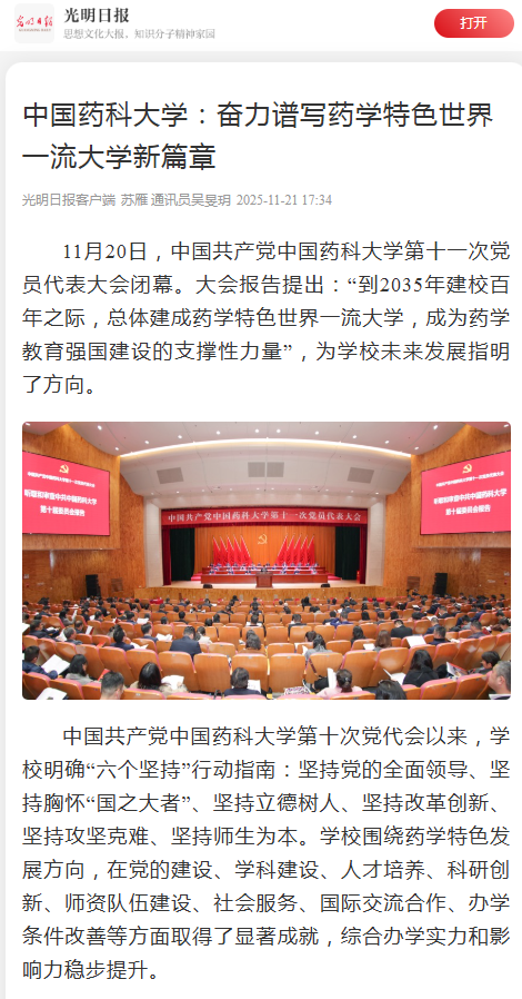 贯彻落实党代会精神丨中央主流媒体聚焦我校药学特色世界一流大学建设