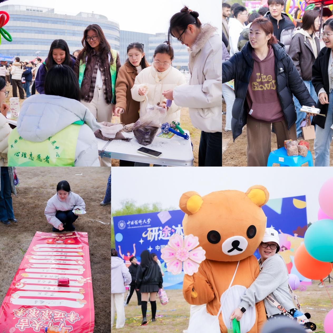 活动现场气氛热烈,研究生们自由穿行于各个展位,或动手创作,或参与游戏,或互动交流,在春光里卸下压力、收获欢笑,现场每一处都洋溢着轻松愉悦的气息。