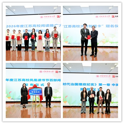 开幕式上,正式发布了江苏高校“2026年度百部阅读好书”。凤凰新华书店集团和新华社新闻信息中心江苏分中心向江苏省高校图工委和中国药科大学图书馆赠送《新时代治国理政纪实》第一卷中英文版。现场还为“2026年度江苏高校阅读推广大使”颁发证书。最后,与会领导和嘉宾共同启动第四届江苏高校凤凰读书节暨中国药科大学第三届春季读书节。