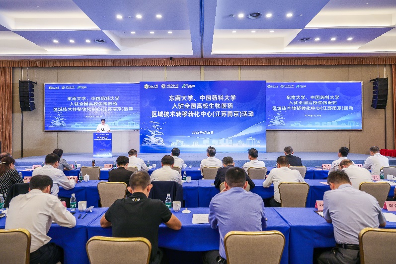 9月25日,东南大学、中国药科大学入驻全国高校生物医药区域技术转移转化中心(江苏南京)活动在南京市江北新区生物医药谷举行。东南大学党委书记邬小撑,我校党委书记戴建君,市委常委、江北新区党工委书记、浦口区委书记陆卫东,省教育厅副厅长杨树兵,东南大学党委常委、副校长邱海波,我校党委常委、副校长杨勇,江北新区党工委委员、管委会副主任王伟以及南京市科技局、教育局领导、两所高校代表、产业界专家及媒体代表等约120人出席活动。活动由江北新区生命健康产业发展党工委书记许双华主持。
