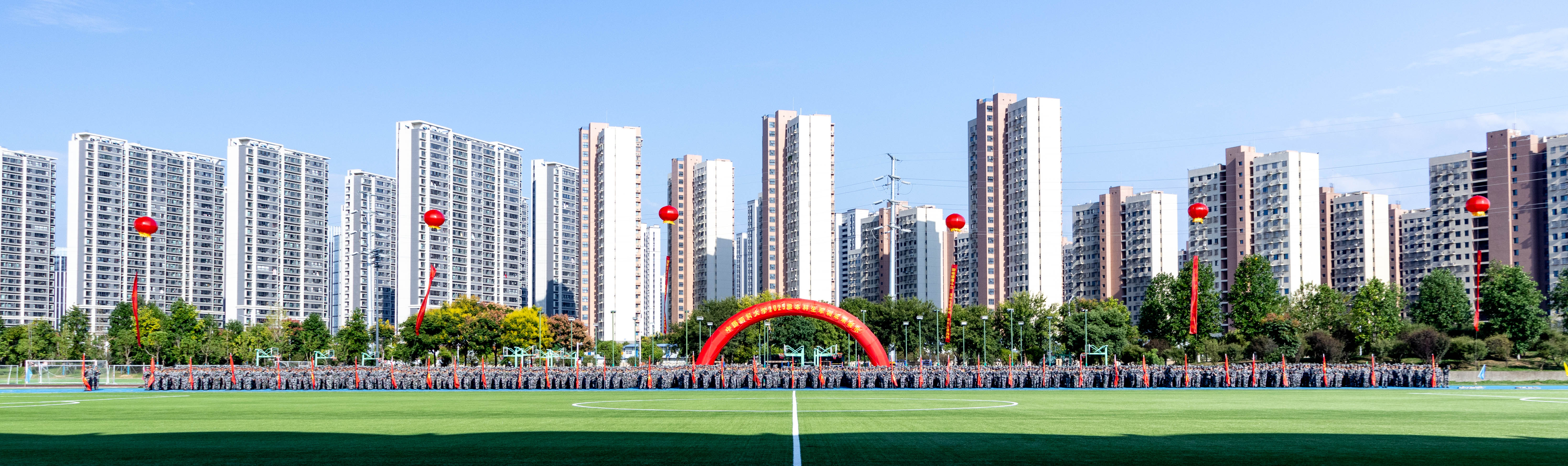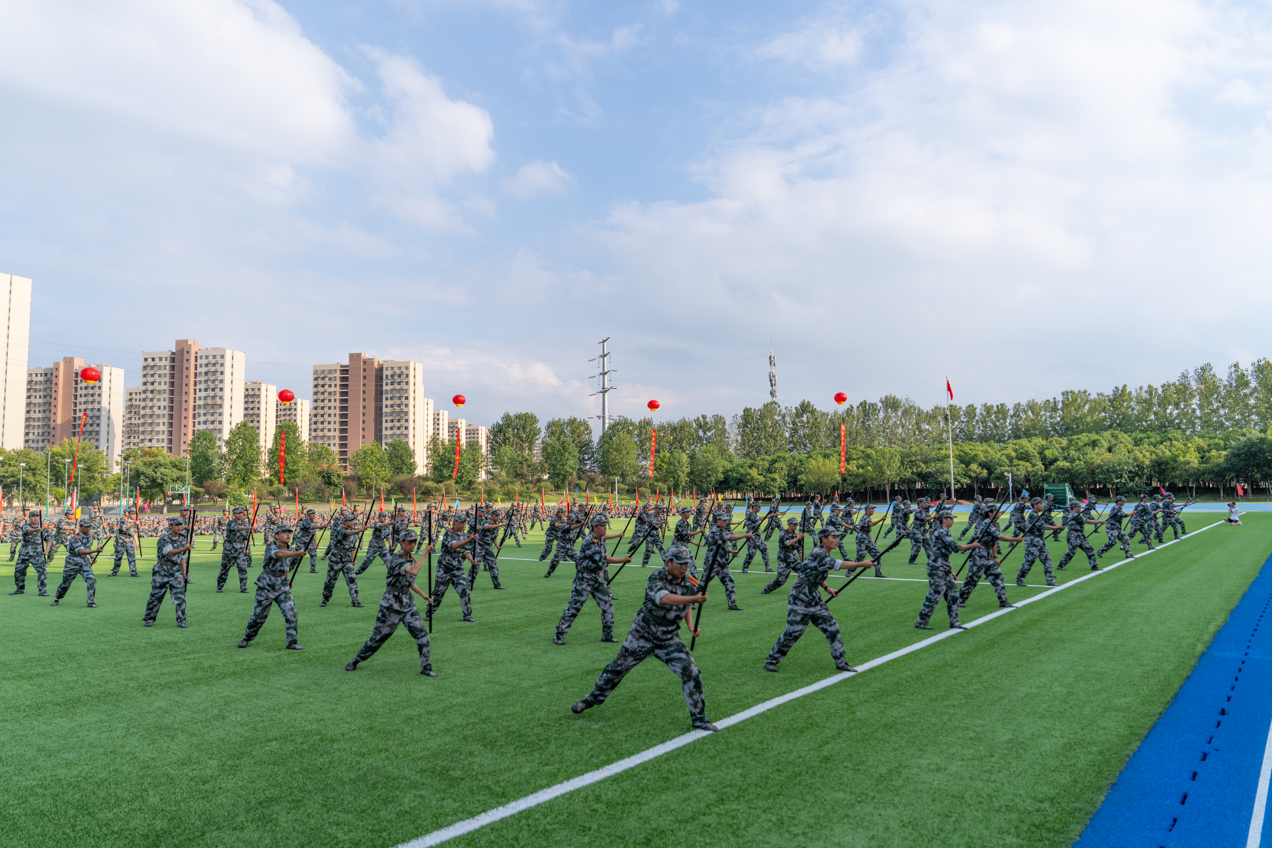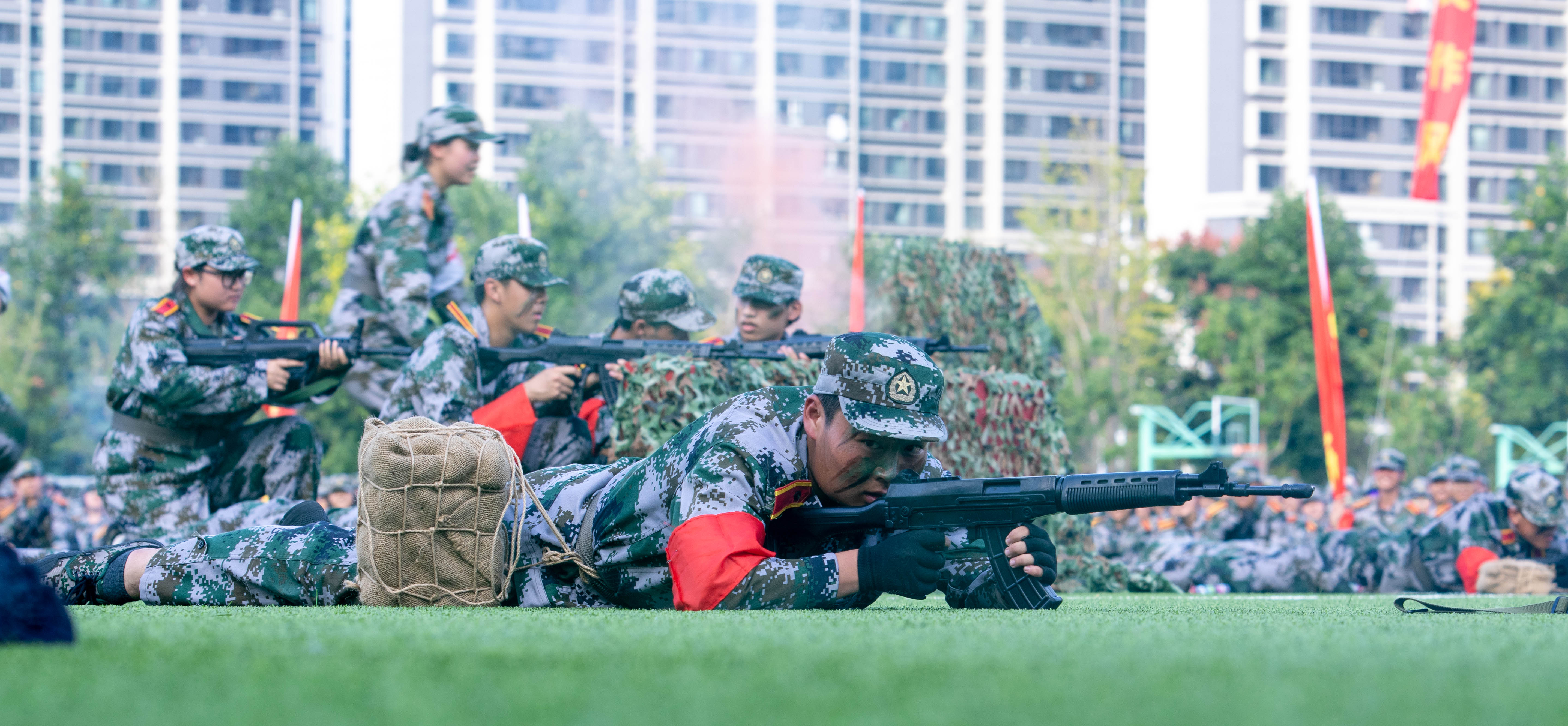 本次军训在完成队列、战术等传统训练内容基础上,利用课余时间,先后组织开展了“国防教育进军训”“交通安全进军训”“消防演练进军训”“反诈防骗进军训”“疾病预防进军训”等系列专题教育活动,进一步丰富了军训内涵。承训教官严格按纲施训、科学组训,坚持技能训练与作风养成并重;全体参训学生不畏艰苦、顽强拼搏,在训练中磨练意志、增强体质,国防观念和组织纪律性得到显著提升。经过军训洗礼的2800余名新生,逐渐褪去青涩,彰显出坚毅果敢的新风貌。他们将以更加饱满的热情和昂扬的斗志,迎接大学学习生活的新征程。