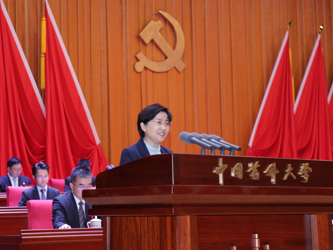 陈艳代表江苏省委教育工委、省教育厅向大会的召开表示热烈祝贺,向教育部长期以来对江苏教育事业的关怀和支持表示衷心感谢,向全体与会代表、中国药科大学全体党员和师生员工致以诚挚问候。她指出,近年来,中国药科大学党委坚持以习近平新时代中国特色社会主义思想为指导,全面贯彻党的教育方针,落实立德树人根本任务,带领全校基层党组织和广大师生党员围绕第十次党代会确定的目标任务,全方位整合创新资源,扎实推进教育科技人才一体发展,药学特色世界一流大学建设进程不断加速,学校综合实力核心竞争力显著提升,为江苏生物医药产业发展和服务国家重大战略作出了重要贡献。省委教育工委、省教育厅将切实履行属地责任,积极配合教育部党组,一如既往关心、支持学校的建设和发展。希望学校新一届党委进一步提高政治站位,切实加强党对学校工作的全面领导;更加注重内涵建设,全力推动学校事业高质量发展;更加注重高效治理,更好统筹高质量发展和高水平安全。以第十一次党代会召开为契机,持续增强学校各级党组织的政治领导力、思想引领力、群众组织力、社会号召力,进一步统一全校干部师生的思想,团结一心、砥砺奋进,凝聚推动学校事业新发展、新跨越的磅礴力量。