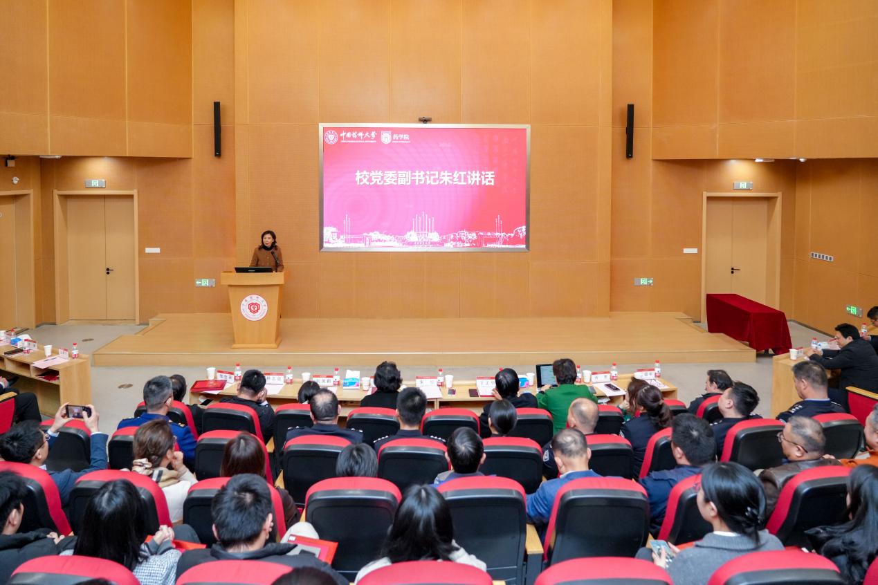 12月19日下午,药学院在江宁校区经管文楼111报告厅举行青年成长导师聘任仪式。校党委副书记朱红、学校相关职能部门负责人、药学院师生代表参加活动。活动由药学院党委书记范素文主持。