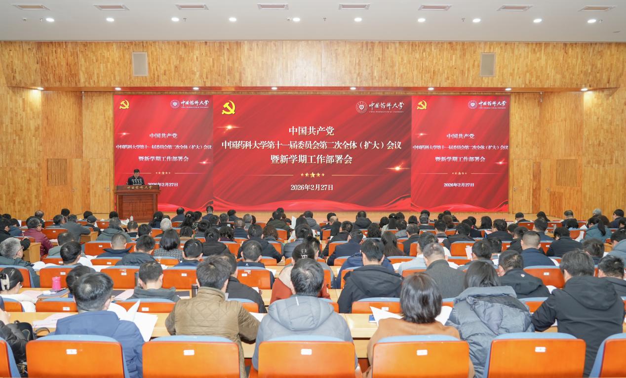 会上,戴建君代表学校党委作了题为《锚定目标夯实基础全面发力奋力谱写中国药科大学高质量发展新篇章》的工作报告。他指出,过去一年,学校党委坚持以习近平新时代中国特色社会主义思想为指导,全面贯彻落实党的二十大和二十届历次全会精神,高标准开展深入贯彻中央八项规定精神学习教育,高质量召开学校第十一次党代会,高站位落实教育强国建设规划纲要和教育强国建设三年行动计划,各项事业取得了新进展、新突破。他强调,今年是“十五五”开局之年,要以高质量编制“十五五”规划为契机,全面提升学校统筹发展与系统谋划水平。要坚持把高质量党建作为根本保证,推动党的教育方针贯穿办学治校始终;坚持以新时代立德树人工程为抓手,持续塑造铸魂育人新格局;坚持以更高标准、更实举措推进全面从严治党,为学校高质量发展提供坚强保障。